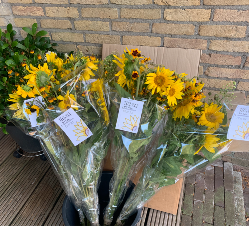 Afgelopen maand heb ik ik mijn aller eerste actie gehouden! Hiervoor heb ik bossen zonnebloemen verkocht. Deze bloemen heb ik lokaal mogen plukken, dankzij een boer uit het dorp. Heel erg bedankt, het was een succes!