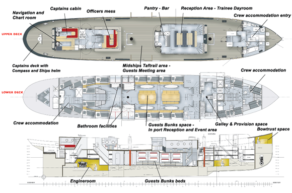 De main hold is het hart van het sociale leven aan boord. Hier studeer je, slaap je, doe je spelletjes met elkaar en kun je tussendoor lekker chillen. Het schip is fris en modern ingericht.